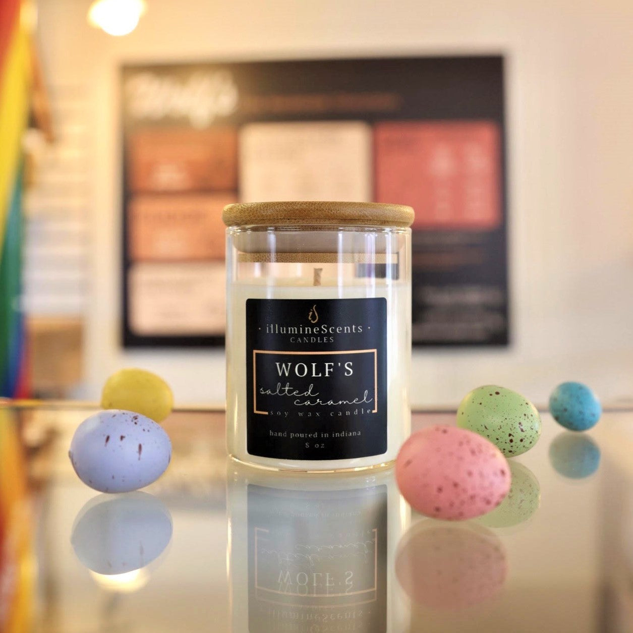 Personalize any candle and choose your desired scents. We can customize any label or jar to your liking. Custom orders are perfect for complimenting any wedding, baby shower, birthday, holiday, business entity (as pictured), and more!